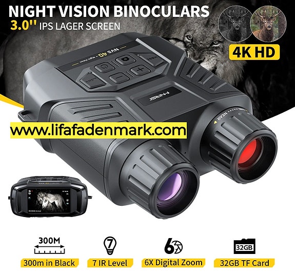 750 kr.4K HD kikkert Night Vision Infrarød 6x digital zoom 300m Observations afstand 7Glostrup2.6.25LifafaDenmark ApsFøj til favoritter.