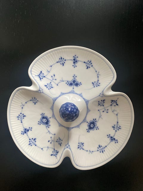 Rolyal Copenhagen blå mega musselmalet aflangt fad. Nr. 378. Måler 36cm langt