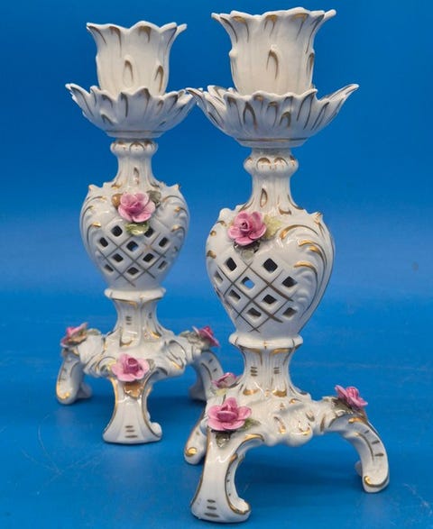 1.863 kr.PMP – Paar Porzellan-Kerzenleuchter mit Rosenapplikationen – handbemalt - Lys...København K9 t.Catawiki B.V. Føj til favoritter.