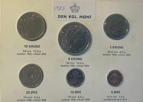 800 kr.Den Kgl. Mønt Årgangssæt af Ucirkluerede Mønter 1983/1984/1986/1988Vejle Øst25. sept.Føj til favoritter.