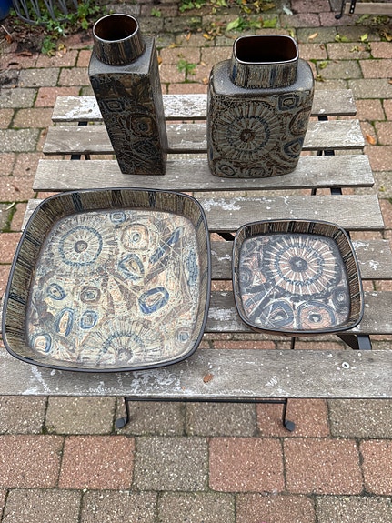 1.200 kr.Royal Copenhagen “ Baca” af Nils Thorsson 1968. Keramik fade og vaser.Helsinge10. mar.Føj til favoritter.