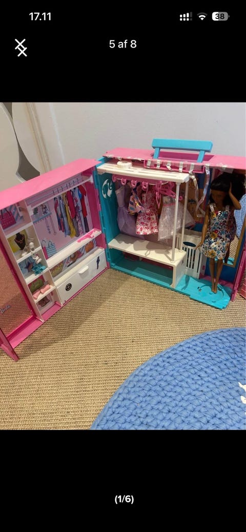 100 kr.Barbie garderobeskab dukketilbehør pink BarbieVirum28. feb.Køb nuLastbil i bevægelseFiks færdigFøj til favoritter.