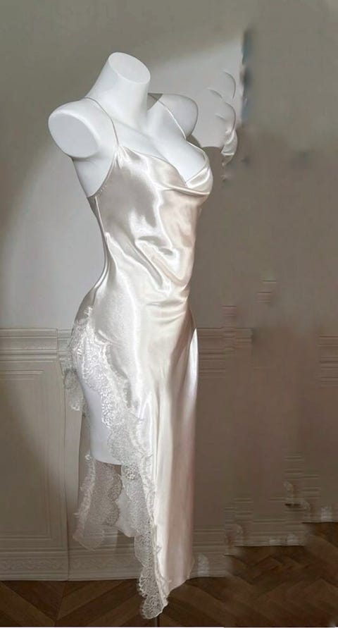 149 kr.Hvid kjole med tynde stropper og blondekant i glansfuldt materiale str MStr. MHedehusene3 dageKøb nuLastbil i bevægelseFiks færdigFøj til favoritter.