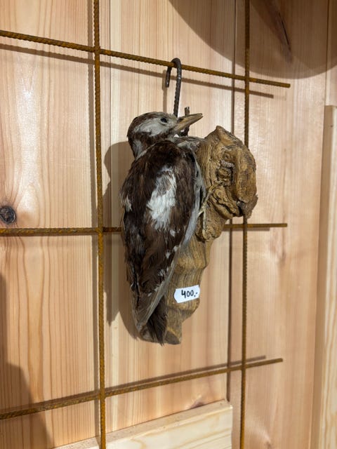 Udstoppet fugl på gren