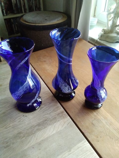Blå glasvaser og dekorative glasgenstande