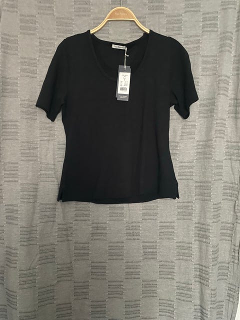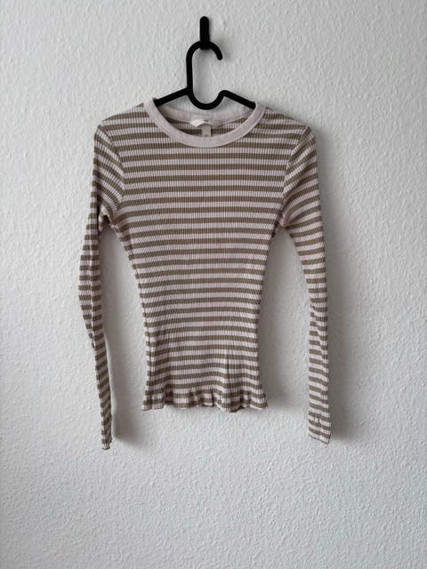 En t-shirt er grundlaget for mange outfits. Den er velegnet som undertrøje, under en jakke eller uldjakke, til sport eller som en top om sommeren. På de nordlige breddegrader er en langærmet t-shirt et praktisk grundlag for et outfit i mange sæsoner. En t-shirt af høj kvalitet kan være en god indvestering, og du kan få mange t-shirts fra danske eller udenlandske klassiske mærker billigere brugt. Når du kigger på annonce(r), bør du se nøje på produktets størrelse og tilstand.