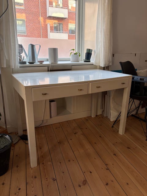 Find et brugt skrivebord til en lavere pris. På DBA er der 3.462 annonce(r), der sælger skriveborde. ## Et lille skrivebord kan gøre stor glæde Et skrivebord, der er unødvendigt for en anden, kan være det helt rigtige til dine behov. Især et skrivebord i massivt træ eller et elektrisk skrivebord kan være et dyrt køb, og du kan finde et velegnet produkt væsentligt billigere brugt. Et godt skrivebord har en velegnet højde for brugeren eller kan justeres. Når du gennemser annonce(r)ne, bør du tjekke bordets dimensioner og sammenligne dem med den bedste arbejdshøjde for dig.