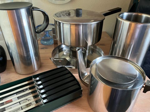 En stilfuld morter, krydderikrukke eller olieflaske bringer køkkenets stil til et nyt niveau, og en entusiastisk hjemmekok ønsker måske en pastamaskine eller en speciel pizzapande. Køkkengrej fra kendte kvalitetsmærker kan være ganske værdifulde. Brugt kan du finde dem til en billigere pris, og måske også unikke gamle køkkenredskaber, som en kreativ dekoratør kan bruge som pynt i køkkenet.