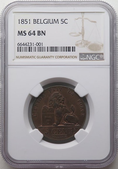 Belgien. Leopold 1.. 5 Cent 1851