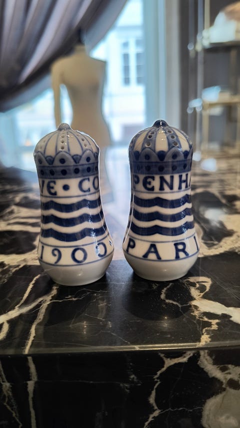Royal Copenhagen - musselmalet peberbøsse fra Verdensudstillingen i Paris 1900
