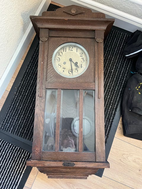 Antik vægur i træ med pendul