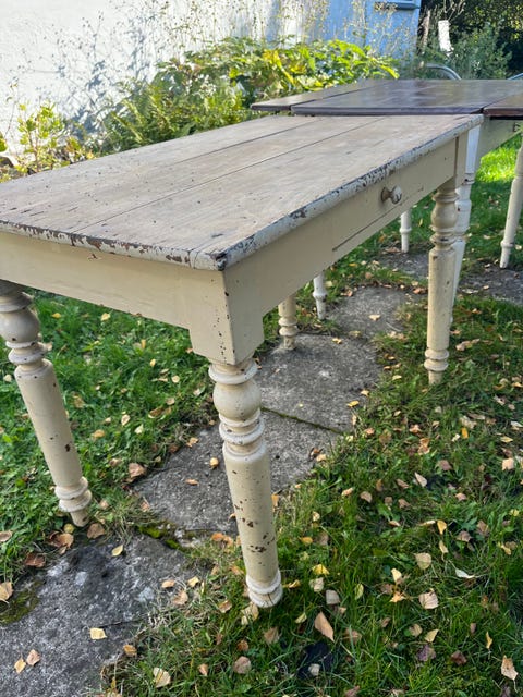 Antik bord med skuffer og plader