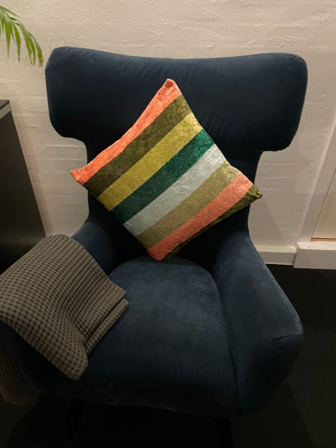 Blå velour stol fra jysk
