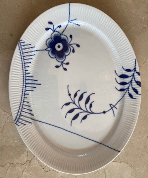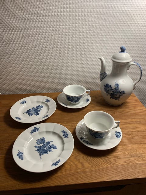 Blå Blomst kantet - kagetallerkner fra Royal Copenhagen - detaljer i annoncen
