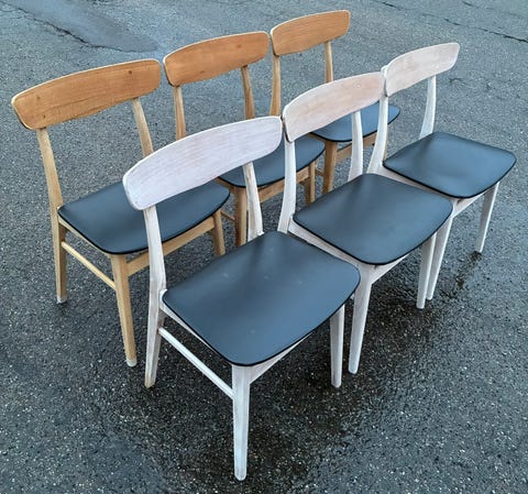 Seks egetræ spisebordsstole