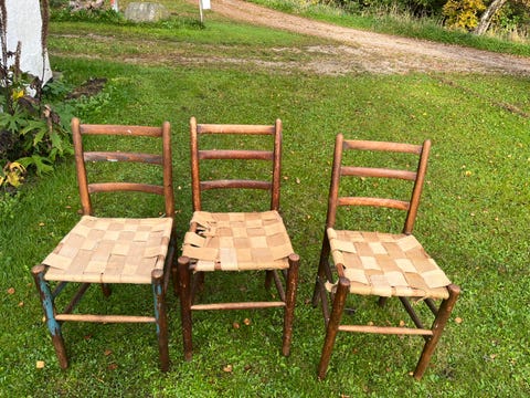 Hans Olsen Frem Røjle 1950 , Lænestol Sort skal med Teak Træramme , sæde skai ,
