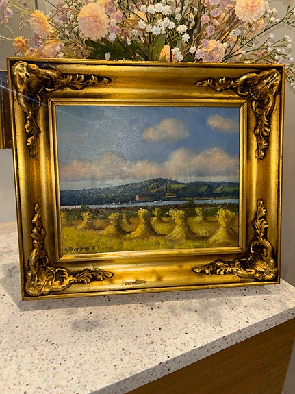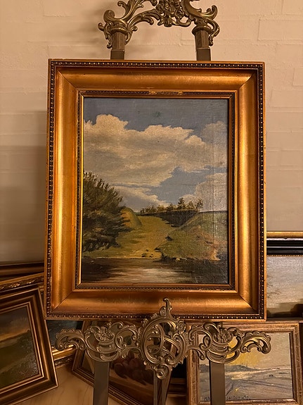 Maleri landskabsmotiv i guldramme