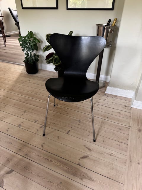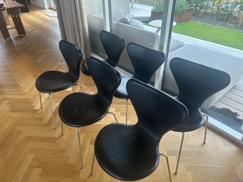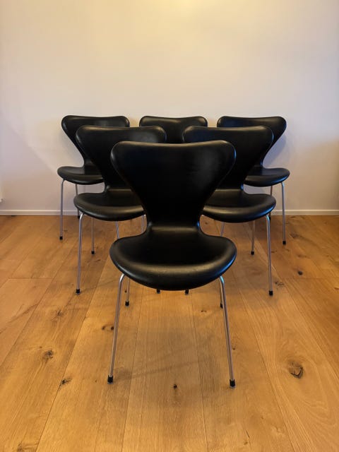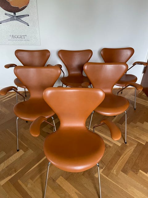 Arne Jacobsen 3207 Syver Armstole – Nypolstret i Cognac Læder & Sort Stel 7er