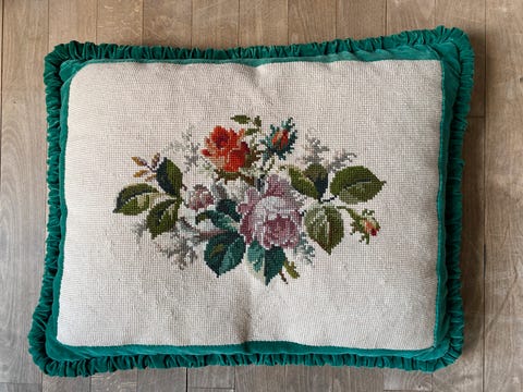 Broderet pude med fløjl