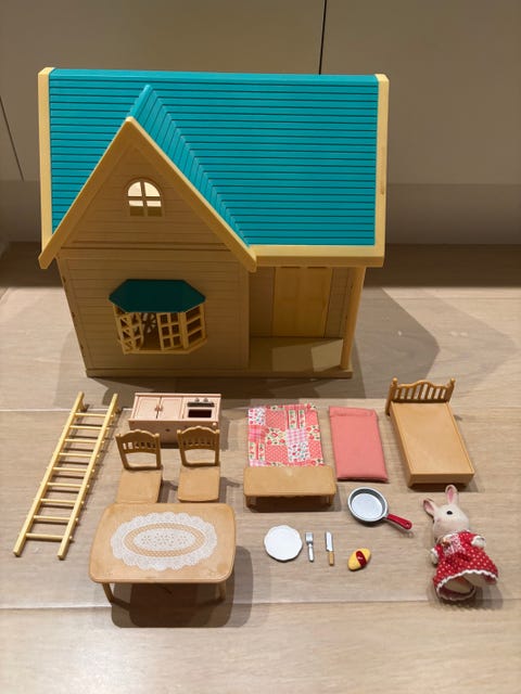 Lille hus med lys i.
