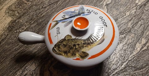 Sildeskål med hank og låg