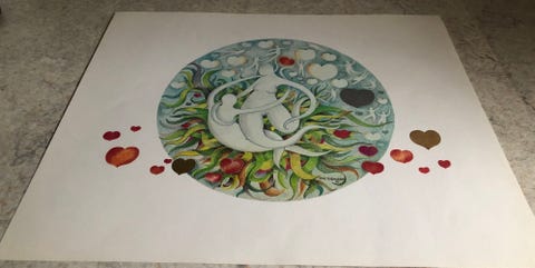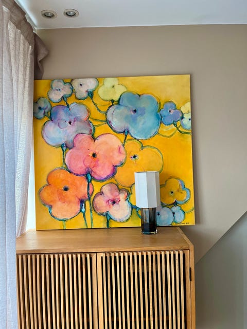 Stort Vægmaleri Kunstværk Sort/Hvid/Rød