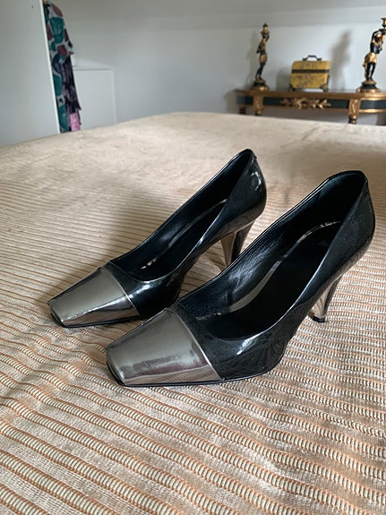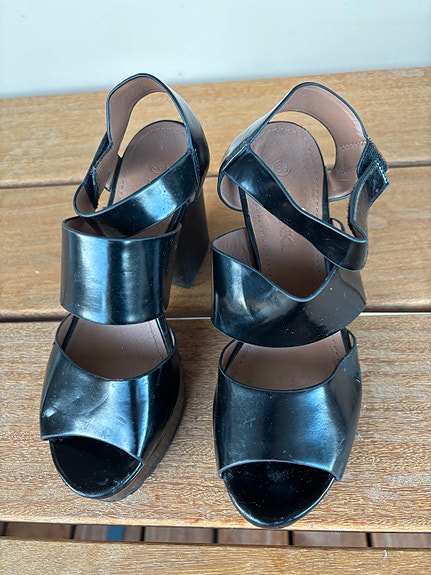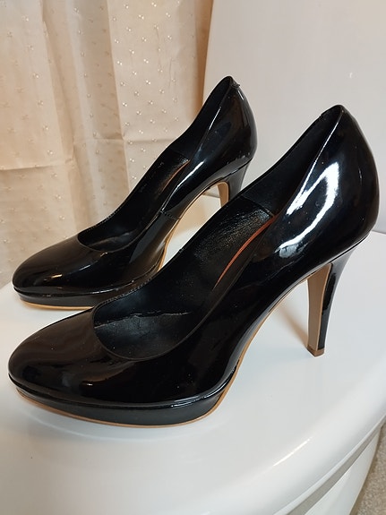 Slingback sort lak sko