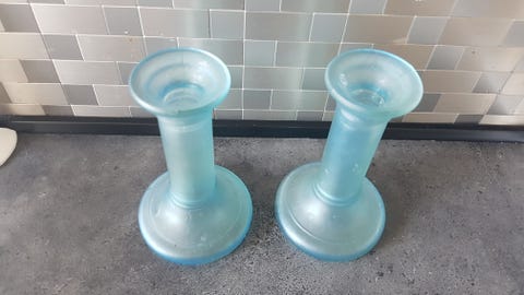 Blå keramik lysestage