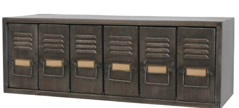 Metal vægreol med skuffer