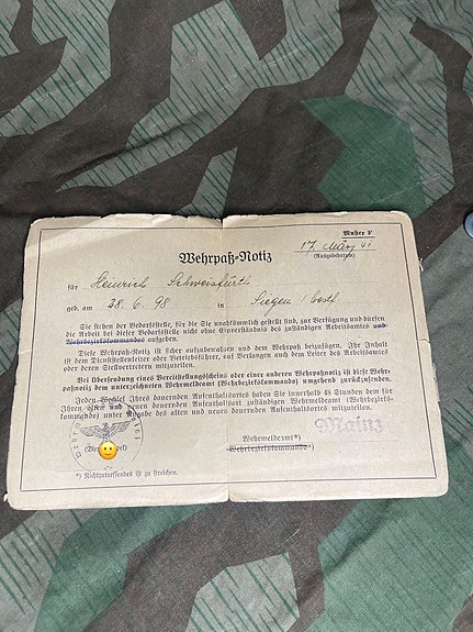 Tysk WW2 Wehrpass notits