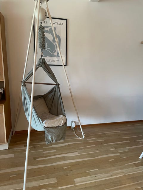 Slyngevugge med stativ og motor