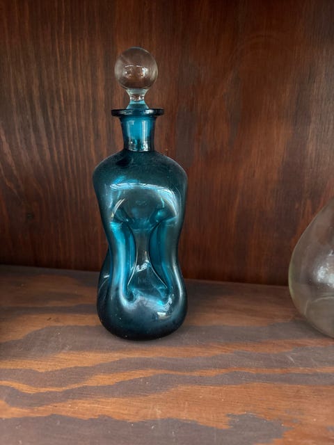 Blå glas karaffel med prop
