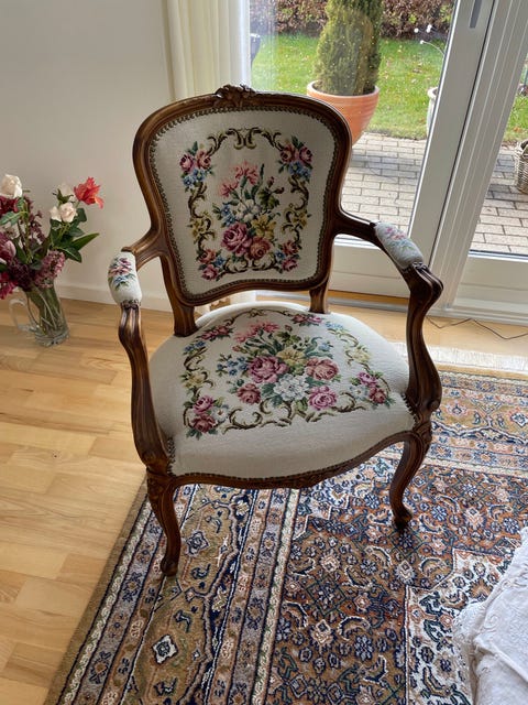 Rokoko stol med broderi