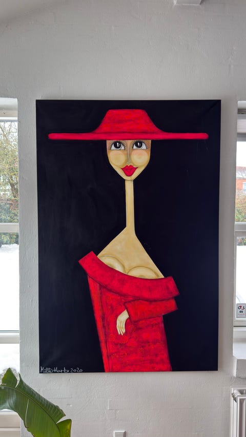 Mette Harbo maleri Den røde Dame