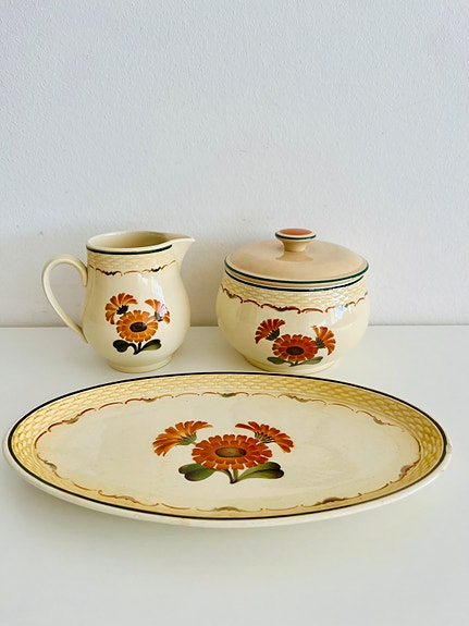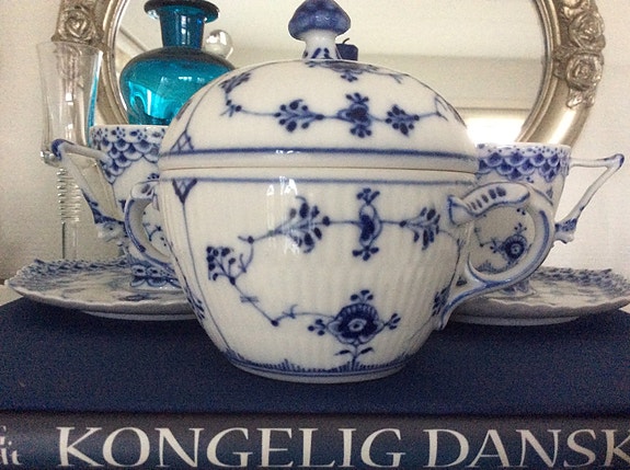 Royal Copenhagen tekande og serveringsdele porcelæn med blomsterdekoration