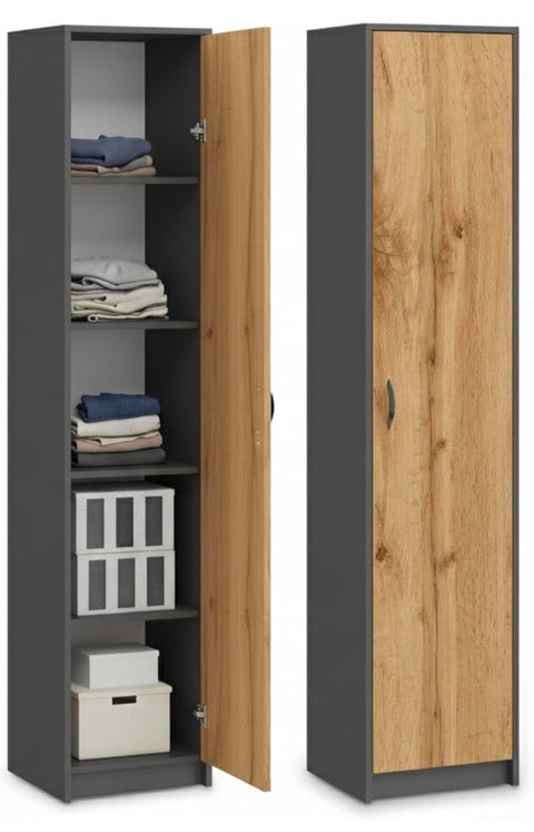 Eket skab med låge, hvid