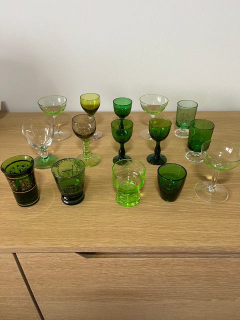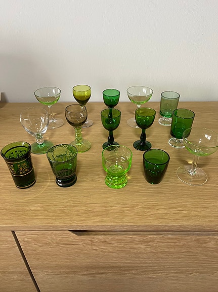 Snapseglas i grønne nuancer
