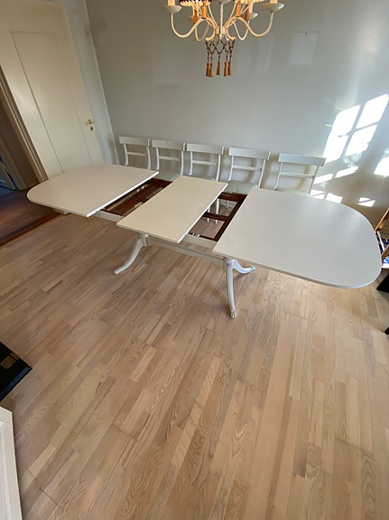 Hvidt bord med metalben