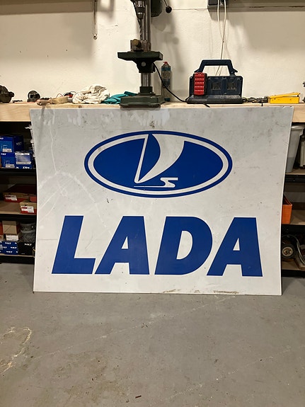 Lada skilt stor hvid blå