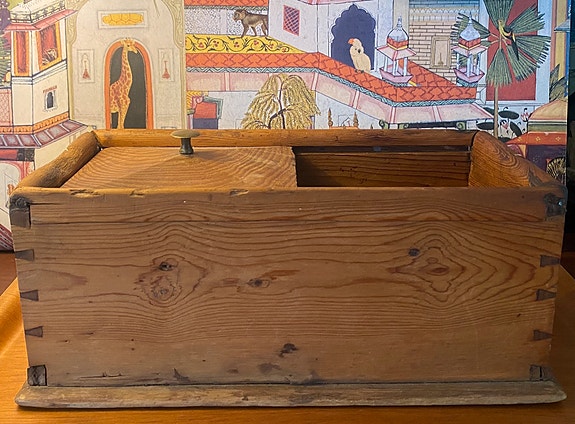Gammel kasse med skydelåg