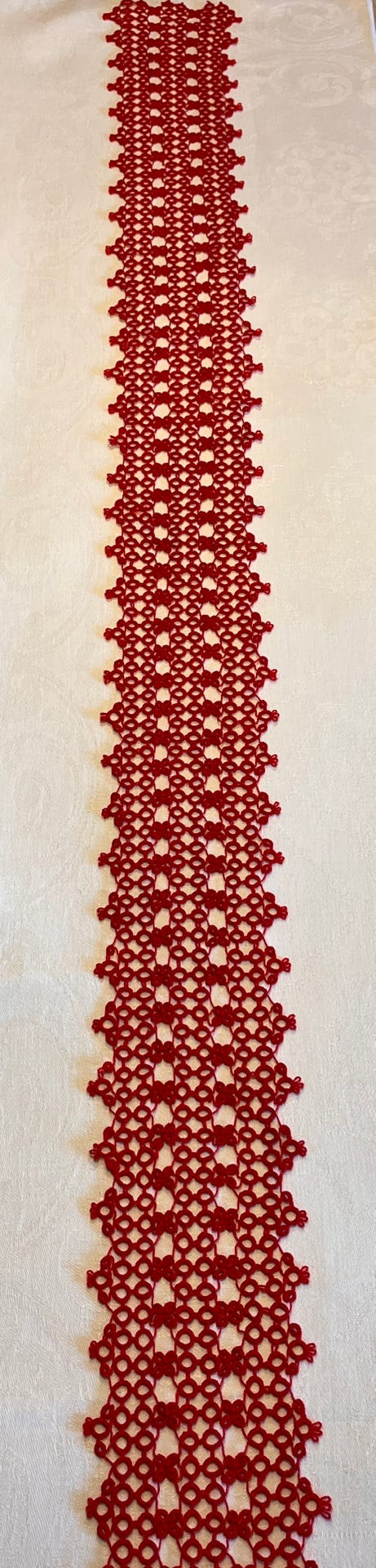 Rød hæklet blondebort bånd
