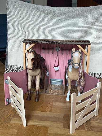 Hestestald og 2 heste