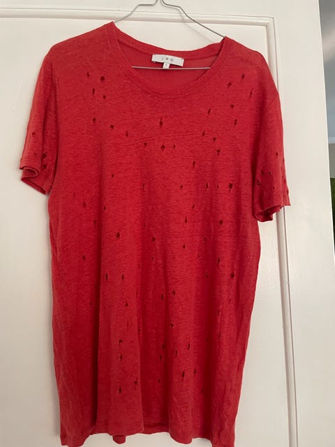 En t-shirt er grundlaget for mange outfits. Den er velegnet som undertrøje, under en jakke eller uldjakke, til sport eller som en top om sommeren. På de nordlige breddegrader er en langærmet t-shirt et praktisk grundlag for et outfit i mange sæsoner. En t-shirt af høj kvalitet kan være en god indvestering, og du kan få mange t-shirts fra danske eller udenlandske klassiske mærker billigere brugt. Når du kigger på annonce(r), bør du se nøje på produktets størrelse og tilstand.