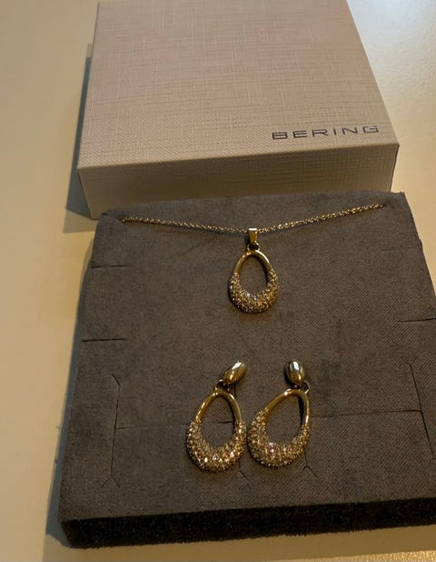 Et smykkesæt inkluderer ofte en halskæde og øreringe, og muligvis også et armbånd eller en ring. Delene i et smykkesæt passer naturligvis sammen og giver dit outfit et komplet look. Tjek DBA's 2.042 annonce(r) og se, om du kan finde det perfekte smykkesæt.