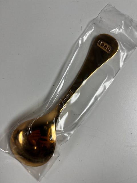 Juleske teske Georg Jensen / A. Michelsen forgyldt sølv tegn. af Dronningen 1984