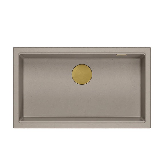 Køkkenvask i granit med guldafløb
