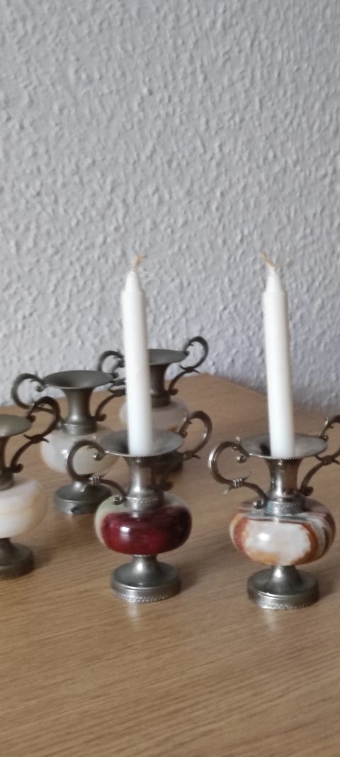 Stentøj, 2 lysestager, Retro