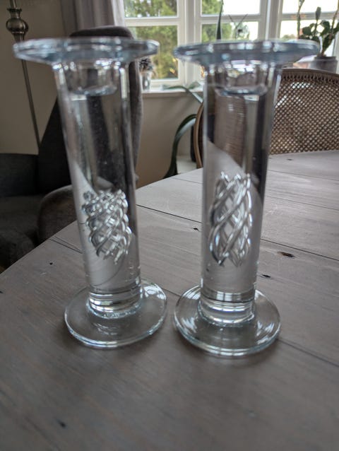. Glas lysestager med pynt
