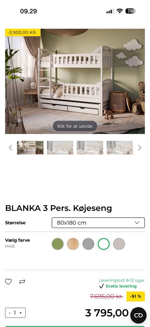 Køjeseng 80x180