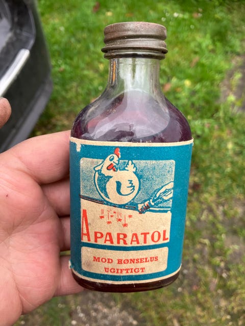 Gammel flaske med indhold